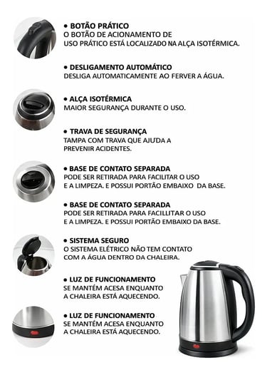 A Chaleira Elétrica Unitermi 110V oferece praticidade, rapidez e segurança para o dia a dia. Com capacidade de 1,8L, aquece a água rapidamente, economizando tempo e energia.